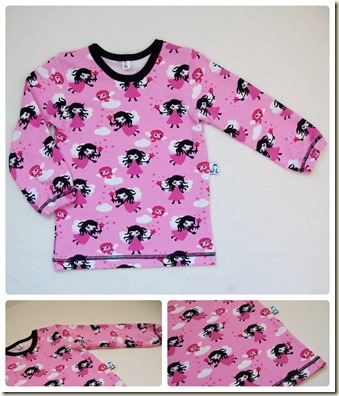 En liten fin tröja i storlek 80/86fick det bli av det fina Svävande feer-tyget från norska Sydilla. Jersey med stetchig lycra och suupermjuk insida. Tyget köpte jag på syfestivalen i höstas tillsammans med det lite tuffare Monstertruck-tyget av samma kvalitet! En tröja i storlek 80/86 , en mössa 50/52 och en body i storlek 74/80 . Heja Norge! ;)